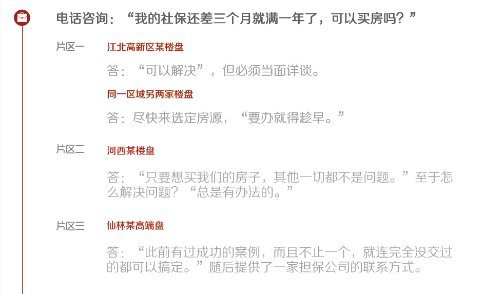南京樓市中的潛規則比比皆是,“繞限購”僅是其中之一。盡管市住建委已三令五申,強調嚴加執行,但時至今日,依然屢禁不止。有知情人士透露,南京樓市中的“繞限購”行為一直存在,其中不排除有部分售樓員的個人行為[詳細]