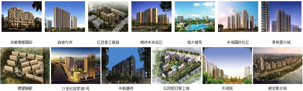 華潤悅府,鳳凰山莊,雅居樂濱江國際,銀城長島觀瀾,南京世界貿易中心,斯亞首府,宏圖上水庭院,高科榮境,富力十號,五礦九璽臺。