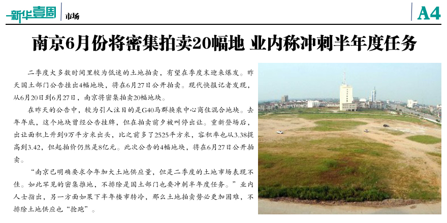 南京6月將密集推20幅地