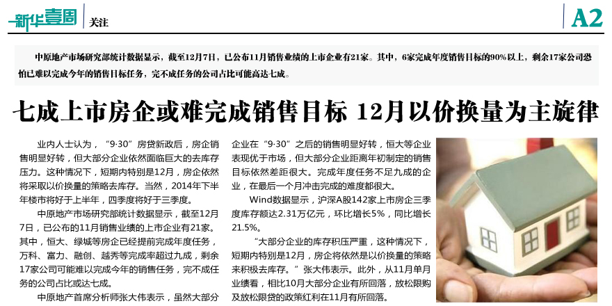 七成上市房企或難完成銷售目標