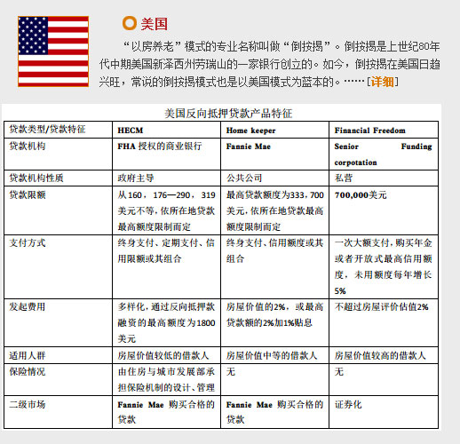 | “以房養老”金融產品推出的最大阻力來自于金融機構,其中擔心房價下行是主要原因。一位保險從業者說,這項工作的“難度在于,對國內房地產市場價格中長期走勢、人均預期壽命等關鍵因素的難以預測。對銀行、保險公司等機構來說,倒按揭與正按揭恰恰相反,時間越長風險越大。 |