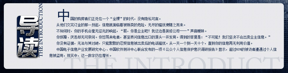 李剛困惑了,"如果不是售樓處,那是誰(shuí)偷走了我的信息?"。 【詳細(xì)】 |