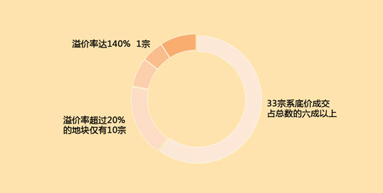 | 武漢上半年出讓的地塊中,有33宗系底價成交,占總數的六成以上;溢價率超過20%的地塊僅有10宗,最高的為沌口的一宗地塊,溢價率達140%。而進入4月以后,歷次土拍無一不是"火速底價成交"。[詳情點擊] |