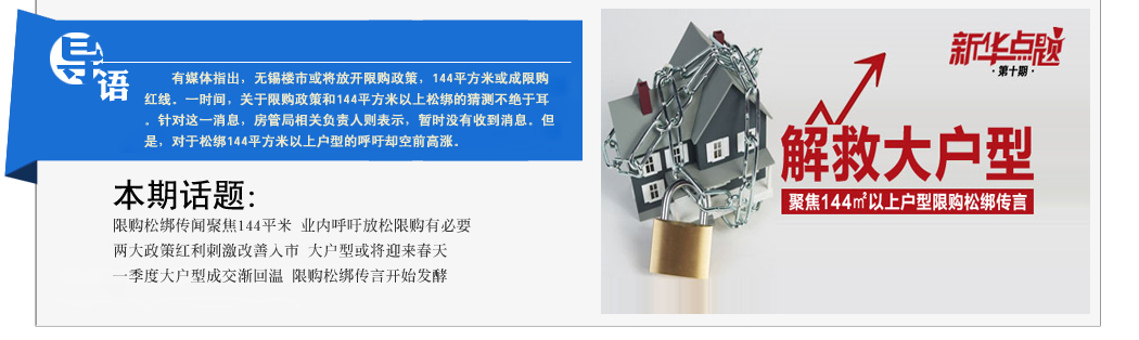 “單獨二孩”之后144平以上限購松綁 錫大戶型迎來新機遇