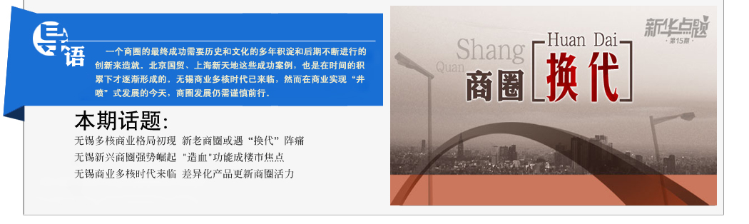 近年來,隨著城市化進(jìn)程的加快推進(jìn),舊商圈的升級(jí)和新商圈的興起正在輪番上演。目前無錫商圈呈現(xiàn)出遍地開花的景象,然而它們命運(yùn)卻各有不同,有的逐漸沒落、有的寶刀未老、有的嶄露頭角……無錫商圈正進(jìn)入一個(gè)“新時(shí)代”。