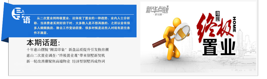 近日,新華網(wǎng)針對(duì)惠山區(qū)進(jìn)行了一場(chǎng)百位購(gòu)房者二次置業(yè)大調(diào)查,調(diào)查顯示,在目前限購(gòu)、限貸等一系列“組合拳”的作用下,有將近6成原打算梯級(jí)購(gòu)房的置業(yè)者,傾向于選擇一步到位的終極置業(yè)盤。