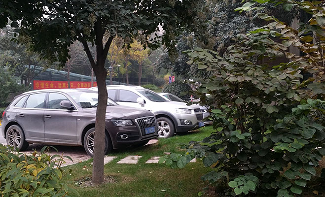 記者在小區(qū)內(nèi)也看到,有公共綠化區(qū)域或者通道被汽車或者電動車占用的現(xiàn)象,一位業(yè)主告訴記者,這還是在白天,晚上的情況更加嚴(yán)重,一到下班時間,馬路的二級輔道也會長長地停著一排車,物業(yè)對此不聞不問。
