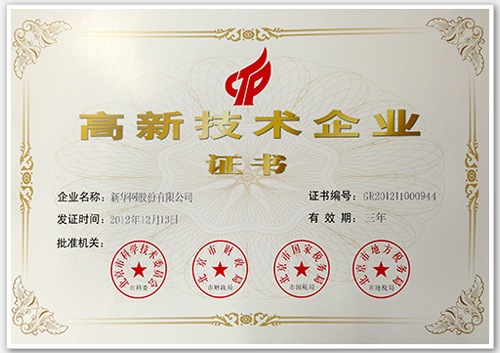 新華網(wǎng)獲頒國家高新技術(shù)企業(yè)證書,成為首家獲得高新技術(shù)企業(yè)認(rèn)定的中央重點(diǎn)新聞網(wǎng)站。