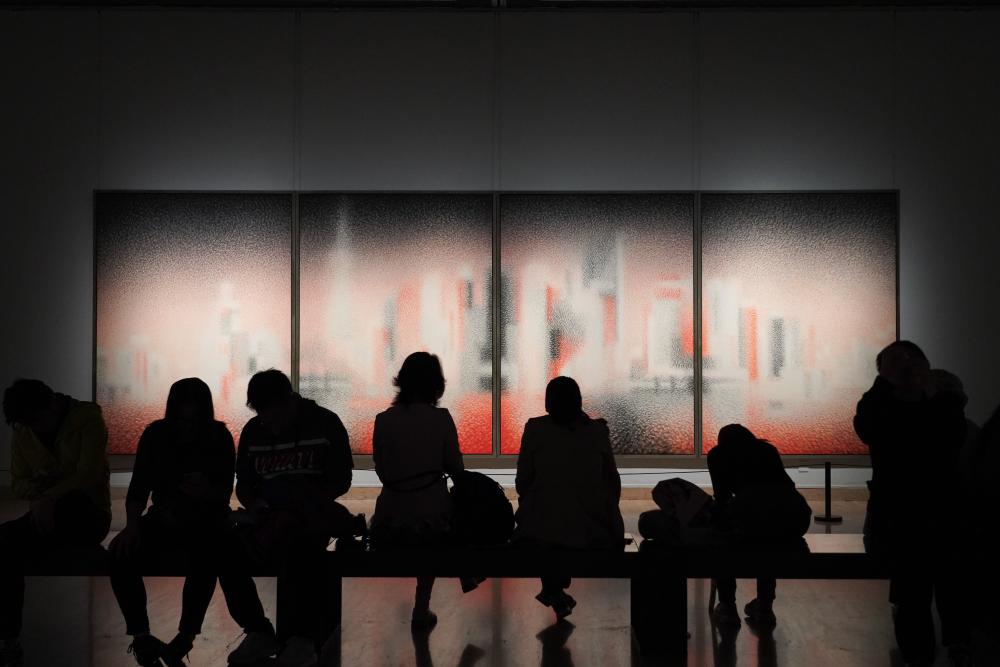 中国美术馆展出的“数字山水”作品《极夜花火》(10月8日摄)。新华社记者 陈钟昊 摄