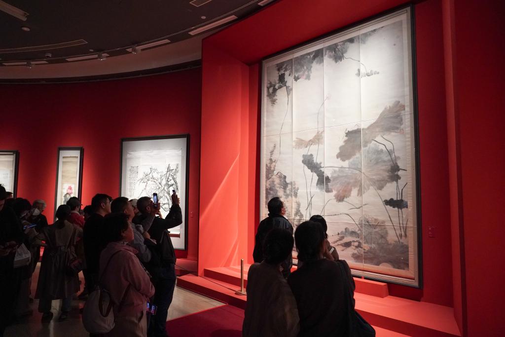 这是“贵在意·致敬经典——全国写意美术作品展”的最后一个展览日。从10月1日至8日,中国美术馆将每日开放时间延长至晚上8点,并在夜场时段新增2000个预约名额。展览中,苏轼的传世名作《潇湘竹石图》与八大山人《荷花》、石涛《江干访友图》、郑板桥《兰竹图》、黄宾虹《万松烟霭》、徐悲鸿《奔马》等名家珍品悉数亮相。
