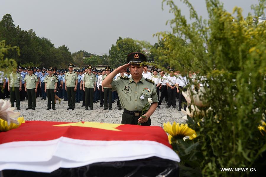 JINAN, Aug. 2 (Xinhua) -- A ceremony was held in Jinan, capital of east China's Shandong Province, on Sunday for people to pay their last respects to a Chinese guard killed in a terrorist attack in Somalia.