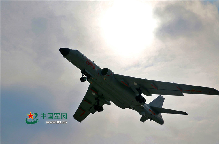 An H-6K bomber takes off to participate in the high-sea training on November 27, 2015.