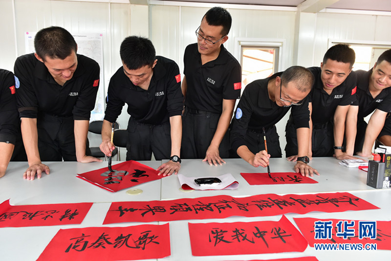 ????2月4日,在新春佳節(jié)來臨之際,第三支赴利比里亞維和警察防暴隊(duì)組織隊(duì)員開展“寫春聯(lián) 迎新春”活動(dòng)。
