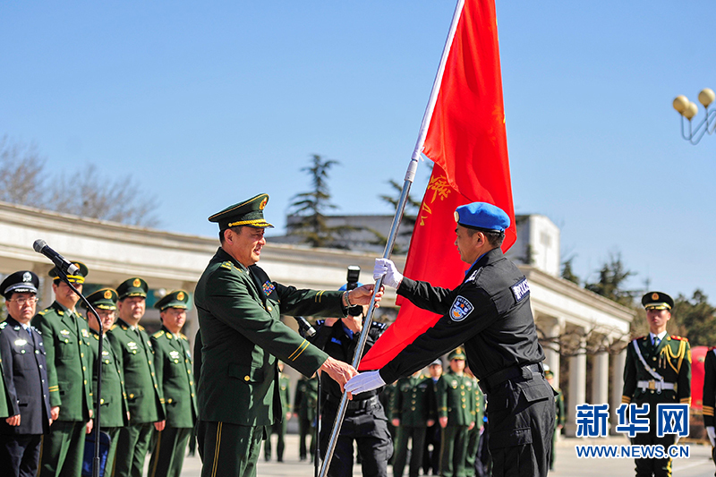 ????10日,中國第四支赴利比里亞維和警察防暴隊在中國維和警察培訓(xùn)中心舉行出征儀式。公安部邊防管理局局長陳定武為防暴隊授旗并講話。中國人民武裝警察部隊學(xué)院院長馬金旗、政委李樂民,公安部邊防管理局副局長徐寬宥,公安部國際合作局副局長徐乃剛,公安部維和警察領(lǐng)導(dǎo)小組成員單位負(fù)責(zé)人等出席出征儀式,為防暴隊送行。