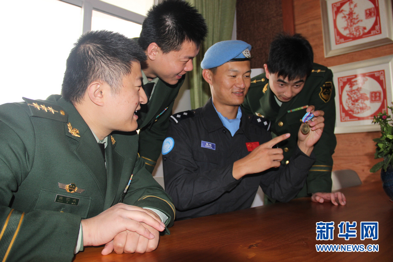 ????趙釗(右二),1989年8月出生,2012年7月畢業分配至山東威海邊防支隊五壘島邊防派出所,2015年3月入選中國第三支赴利比里亞維和警察防暴隊。 ????