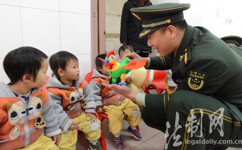 ????12月28日,廣東公安邊防總隊中山邊防支隊橫門水上邊防派出所聯合民眾鎮義工服務隊開展新年集體認親活動,邊防官兵和義工人員走進中山市兒童福利院與小朋友結對認親,“兵爸爸”給“兒女們”送來了玩具、糖果、學習用品等新年禮物,并與“兒女們”一起玩老鷹抓小雞、有獎問答、拍拍手等游戲,一家人用歡聲與快樂迎接新一年的到來。(肖亭 宗志鵬)