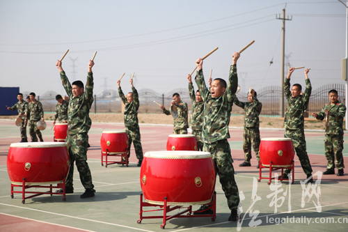 ????4月3日上午山東東營常備維和警隊組織威風鑼鼓、舞龍舞獅、武術等傳統文化節目展演,檢驗文化興趣小組前期學習排練成果。東營市文化館專業老師到場指導點評。