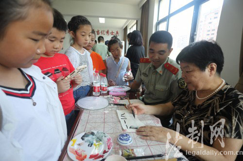 ????為慶祝建軍90周年,7月26日上午,在“八一”建軍節(jié)即將來(lái)臨之際,舟山市定海區(qū)昌國(guó)街道夕陽(yáng)紅書(shū)畫(huà)攝影協(xié)會(huì)的七位老藝術(shù)家和翁山社區(qū)的十幾位小朋友一起走進(jìn)浙江邊防總隊(duì)舟山邊防支隊(duì),開(kāi)展“情系夕陽(yáng)紅,警民魚(yú)水情”慰問(wèn)活動(dòng),受到了官兵們的熱烈歡迎。