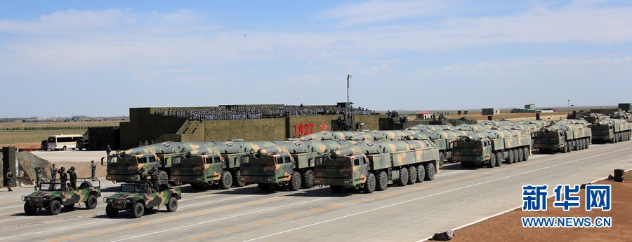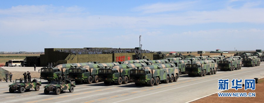 7月30日,慶祝中國人民解放軍建軍90周年閱兵在位于內蒙古的朱日和訓練基地舉行。中共中央總書記、國家主席、中央軍委主席習近平檢閱部隊并發表重要講話。這是核常兼備導彈方隊。新華社記者 查春明 攝