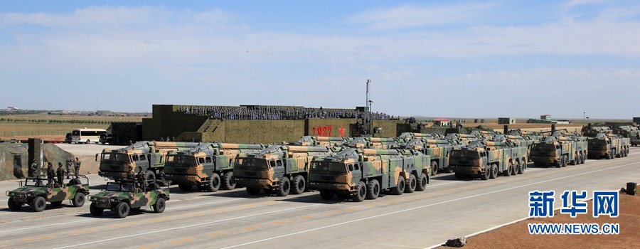 7月30日,慶祝中國人民解放軍建軍90周年閱兵在位于內蒙古的朱日和訓練基地舉行。中共中央總書記、國家主席、中央軍委主席習近平檢閱部隊并發表重要講話。這是常規導彈第1方隊。新華社記者 查春明 攝