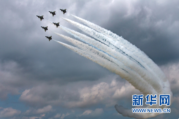 8月4日,中國(guó)空軍八一飛行表演隊(duì)亮相“航空飛鏢”靶場(chǎng)開放日。新華社發(fā)(楊盼 攝)