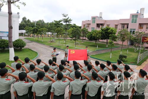 ????8月28日上午,廣西邊防總隊北海邊防支隊機動大隊42名臨退老兵面對黨旗再一次重溫入伍誓詞,感悟軍人的忠誠與責任、邊防戰士的自豪與驕傲。