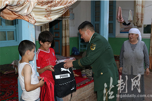 圖為臨近開學,教導員楊強還為阿米古麗小孩帶去了學習用品