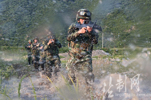 圖為官兵進行圍捕演練