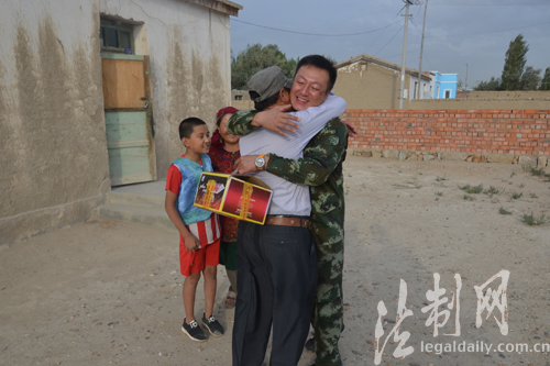 圖為官兵與自己的“親戚”見面時,緊緊相擁,互道祝福