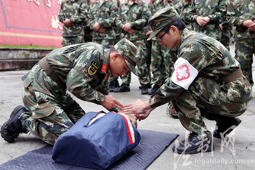 圖為官兵實操學(xué)習(xí)心肺復(fù)蘇
