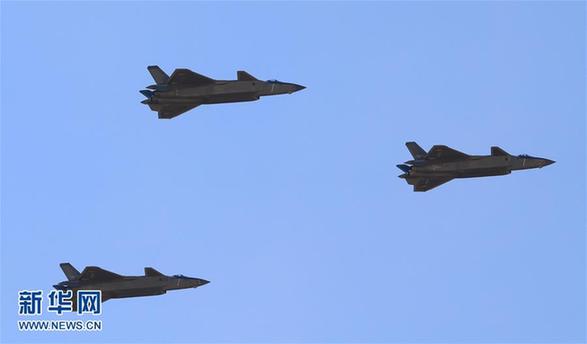 7月30日,慶祝中國人民解放軍建軍90周年閱兵在位于內蒙古的朱日和訓練基地舉行。這是殲擊機梯隊的殲-20戰機。新華社記者 李剛 攝