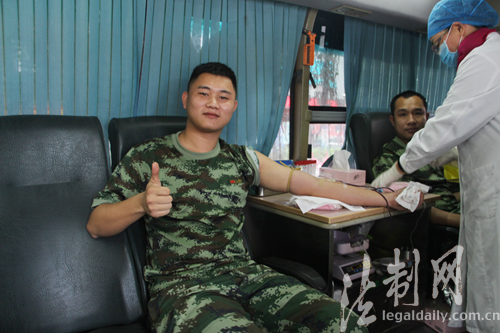 該大隊士官翁慧輝說:“贈人玫瑰,手有余香,我入伍以來已獻血十余次了,累計獻血量超過2800毫升,今天收看十九大開幕式后我非常興奮,希望通過為‘第二故鄉’獻血的形式慶祝十九大勝利召開。”(陸建全)