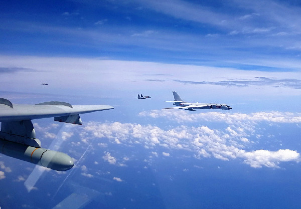 ?。丛拢保溉找詠?lái),空軍出動(dòng)轟-6K、蘇-30、殲-11和偵察機(jī)、預(yù)警機(jī)等多型多架戰(zhàn)機(jī),開展了海上方向?qū)崙?zhàn)化軍事訓(xùn)練。轟-6K等戰(zhàn)機(jī)實(shí)施了“繞島巡航”訓(xùn)練課題,提升了機(jī)動(dòng)能力,檢驗(yàn)了實(shí)戰(zhàn)能力。