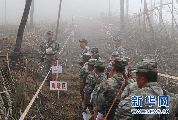 集訓教員在中越邊境麻栗坡某雷場為參訓官兵授課教學(9月1日攝)。新華社發(張輝 攝)