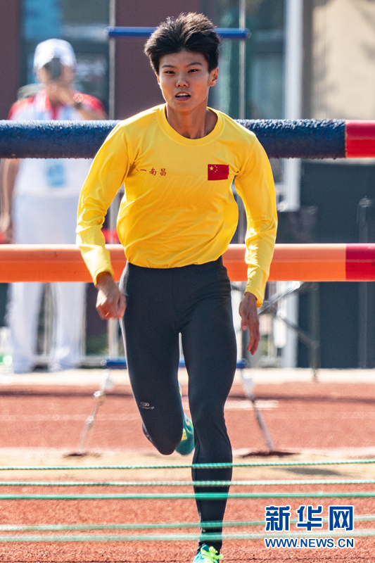 10月20日,中國隊(duì)選手盧嬪嬪在比賽中。 當(dāng)日,在武漢舉行的第七屆世界軍人運(yùn)動(dòng)會(huì)軍事五項(xiàng)女子個(gè)人全能障礙跑項(xiàng)目中,中國隊(duì)選手盧嬪嬪以2分10秒09的成績(jī)打破該項(xiàng)目世界紀(jì)錄,排名第一。 新華社記者劉金海攝