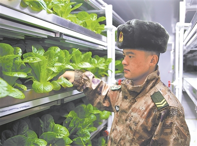 ????高原邊防連隊的“植物工廠”種出新鮮蔬菜。徐明遠(yuǎn) 攝