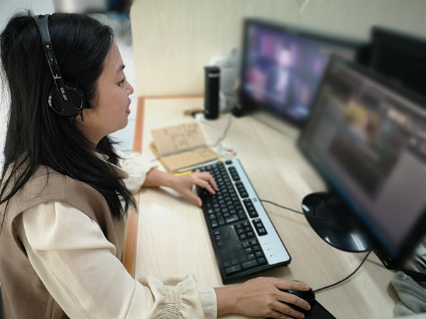 鄭如向業(yè)務骨干傳授視頻編輯技巧。