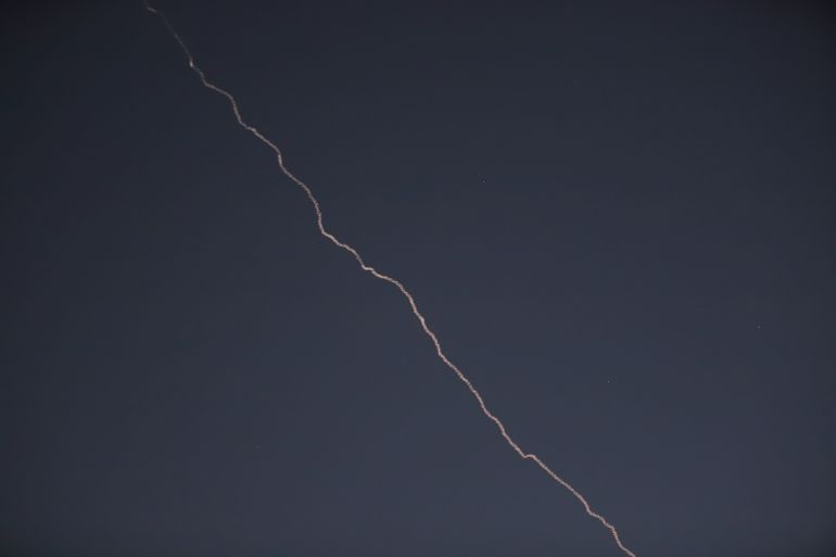 一枚从也门发射的导弹出现在约旦河西岸南部城市希伯伦上空。 图源:外媒报道配图