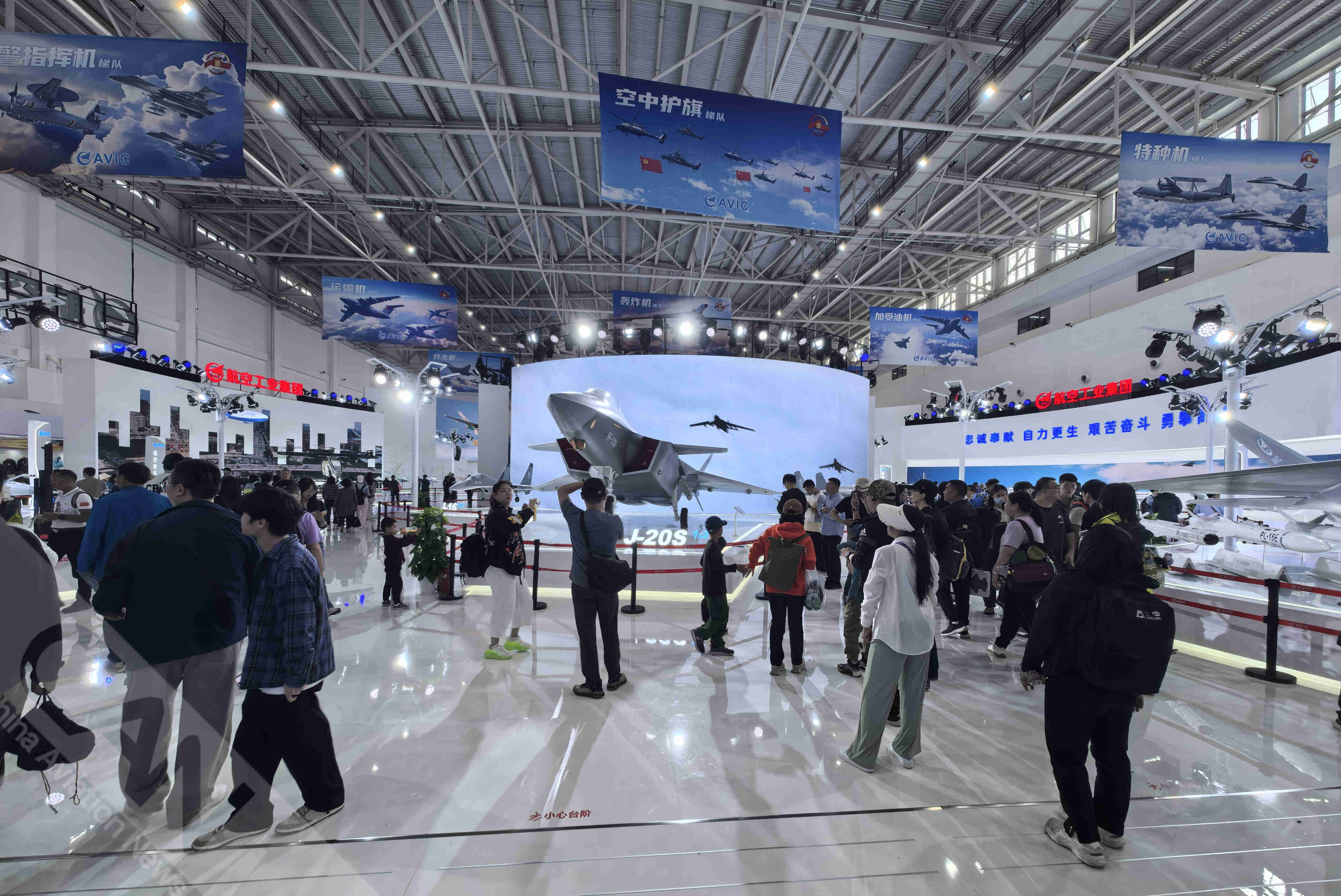 长春航空展开幕首日,中国航空工业集团展台内展出了歼20S等多款“明星产品”,吸引了大批观众前往参观、打卡。(来源:中国航空新闻网 摄影:孙伟)