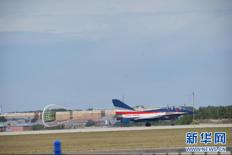 9月20日,空军八一飞行表演队在完成表演后降落。新华网 丁梓朔 摄