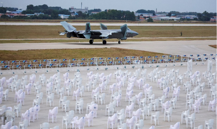 为此,我早早来到主席台的高点,举着相机等待,天色渐暗,看到空空的场地,我一度以为一直坚守目送歼-20离开的可能只有我自己。但当看到歼-20开车、滑出,远方一群人跑向围栏边,纷纷挥手,我有些感动,原来,还有很多人在等待欢送歼-20返程。