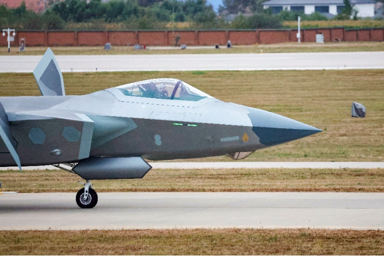 此次航展,歼-20成四机编队带来了精彩展示。像欢送英雄一般,每个人都在努力地挥手。看到这一幕,飞行员也打开鸭翼,向大家致意。