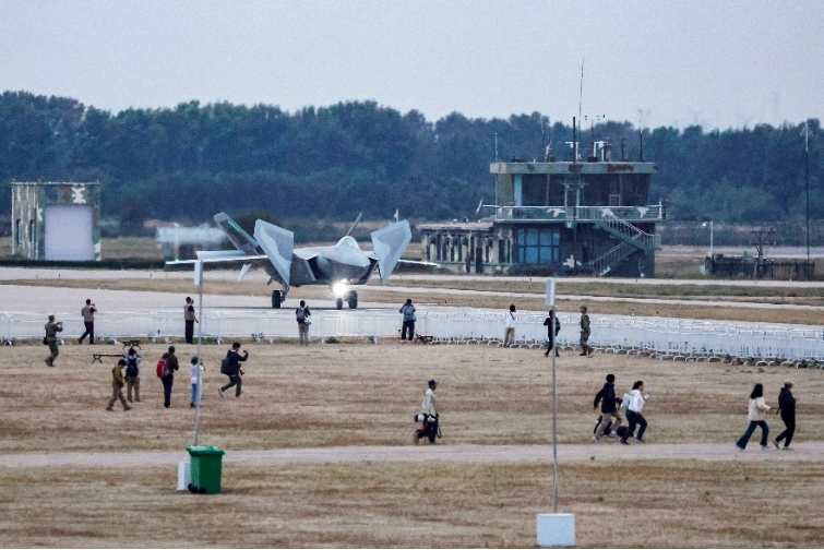 ↑歼-20滑出返程,观众向围栏跑去挥手致意