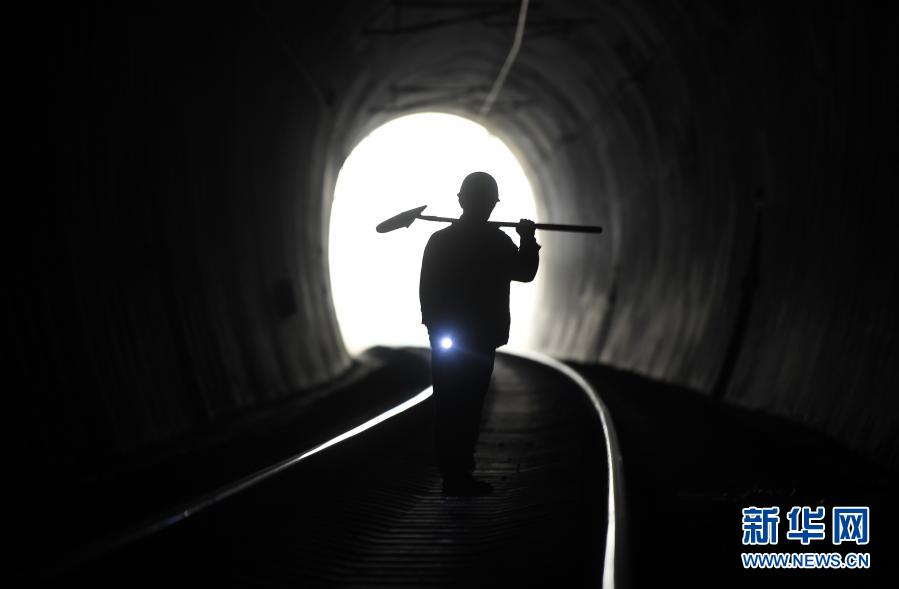 在廣西河池境內黔桂鐵路線上的鄧山隧道,中國鐵路南寧局集團有限公司柳州工務段的4名看守工輪換值班,依靠手電筒在黑暗中穿行,及時巡查隧道中可能出現的各種隱患,確保每天經隧道運行的59趟客貨列車春運安全。鄧山隧道全長773米,是一個需要人員全天候看守的鐵路隧道。