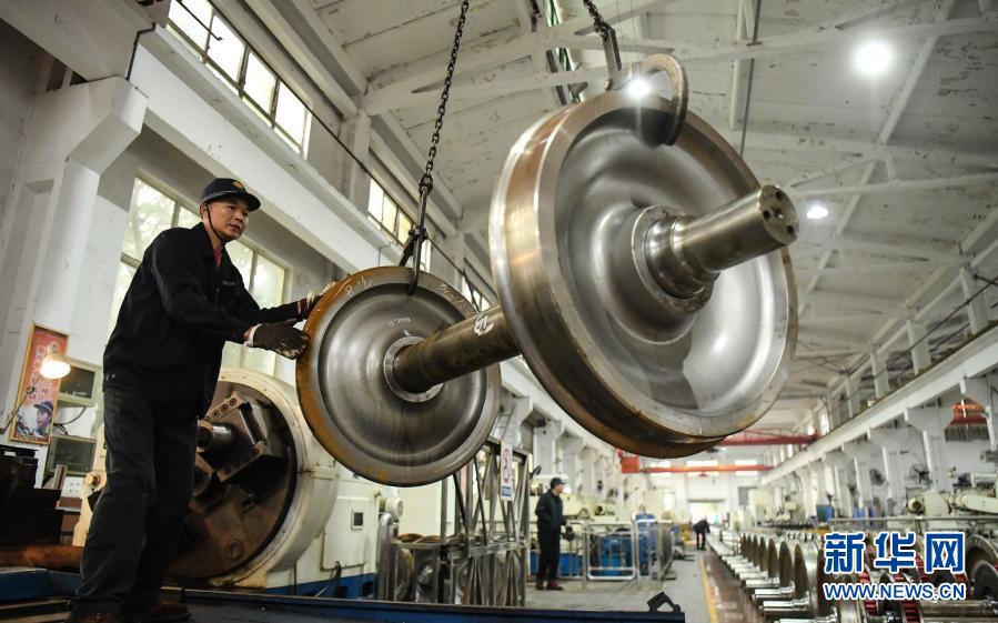 2月1日,柳州車輛段車輪車間輪軸車工農克勻在進行探傷檢查。