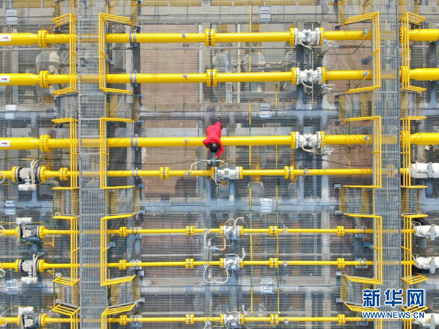 2月3日,在遼河油田儲(chǔ)氣庫公司雷61作業(yè)區(qū),來自吉林遼源的副區(qū)長韓鵬在作業(yè)區(qū)巡檢。今年他留在當(dāng)?shù)剡^年(無人機(jī)照片)。