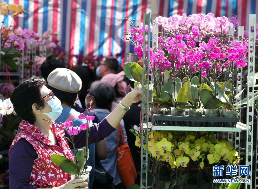 2月6日,市民在香港維多利亞公園的年花銷(xiāo)售點(diǎn)選購(gòu)鮮花。新華社記者 李鋼 攝