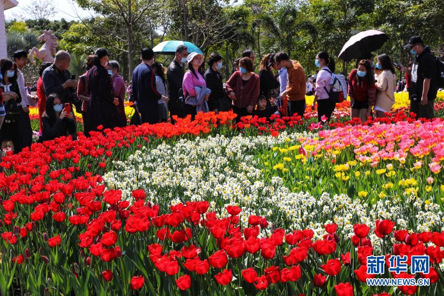 2月14日,游客在福建省廈門市園博苑賞花。新華社發(周道先 攝)