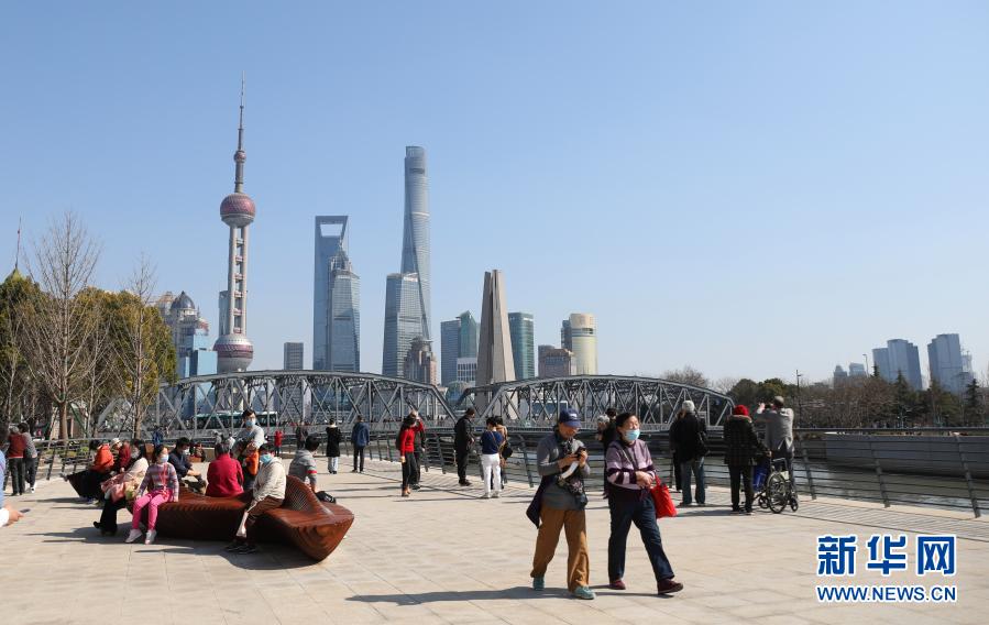 2月21日,人們在上海蘇州河邊漫步休閑。