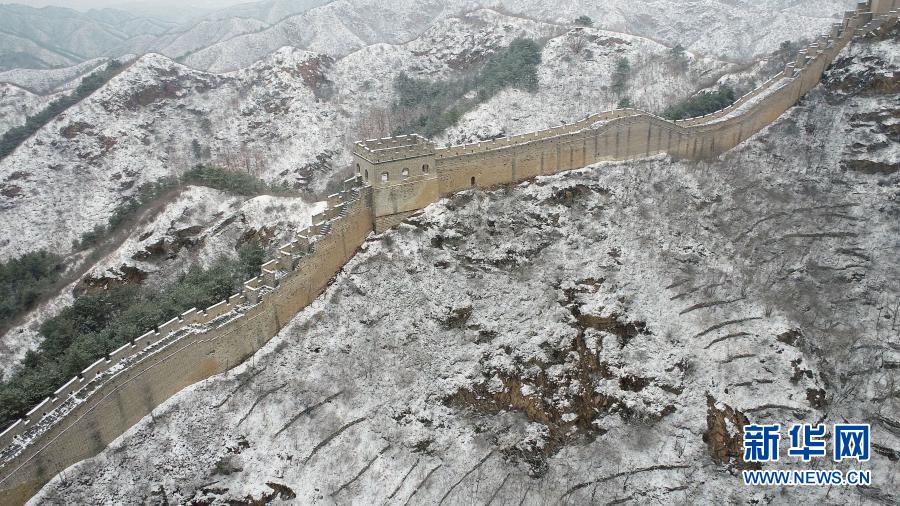 這是2月23日拍攝的金山嶺長(zhǎng)城雪景(無(wú)人機(jī)照片)。受冷空氣影響,河北省承德市灤平縣當(dāng)日出現(xiàn)降雪天氣。雪后的金山嶺長(zhǎng)城銀裝素裹,美如畫卷。新華社發(fā)(王立群 攝)
